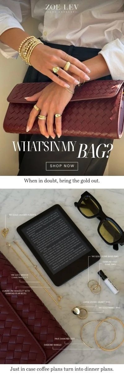 Zoe Lev Jewelry is a female-founded fine jewelry brand based in Los Angeles, CA. I act as the Digital Marketing Manager where I do everything from creating weekly email campaigns, social media posts, and digital ads to creative direction for photoshoots and rebrands.